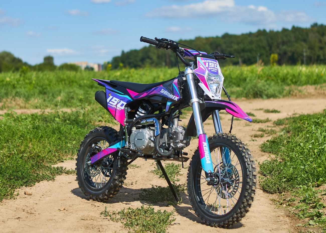Удлиненная колесная база 1220 мм увеличивает устойчивость питбайка и позволяет гонщику комфортно держаться даже на раскисших от дождя дорогах. Диаметр колёс составляет 17/14 дюймов.
